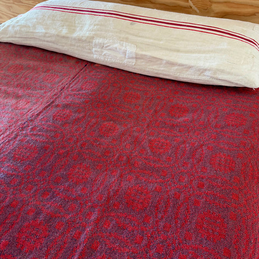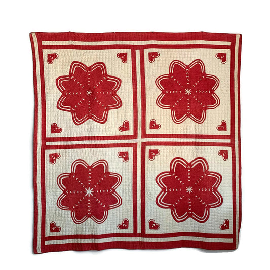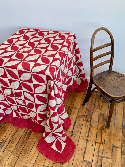 Red and Cream Ruffled Appliqué Finished Quilt Top
