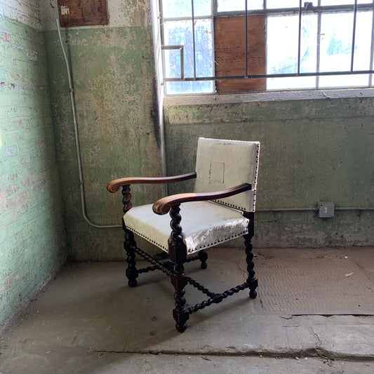 19th Century Barley Twist Armchair in 1940s Military Duffle