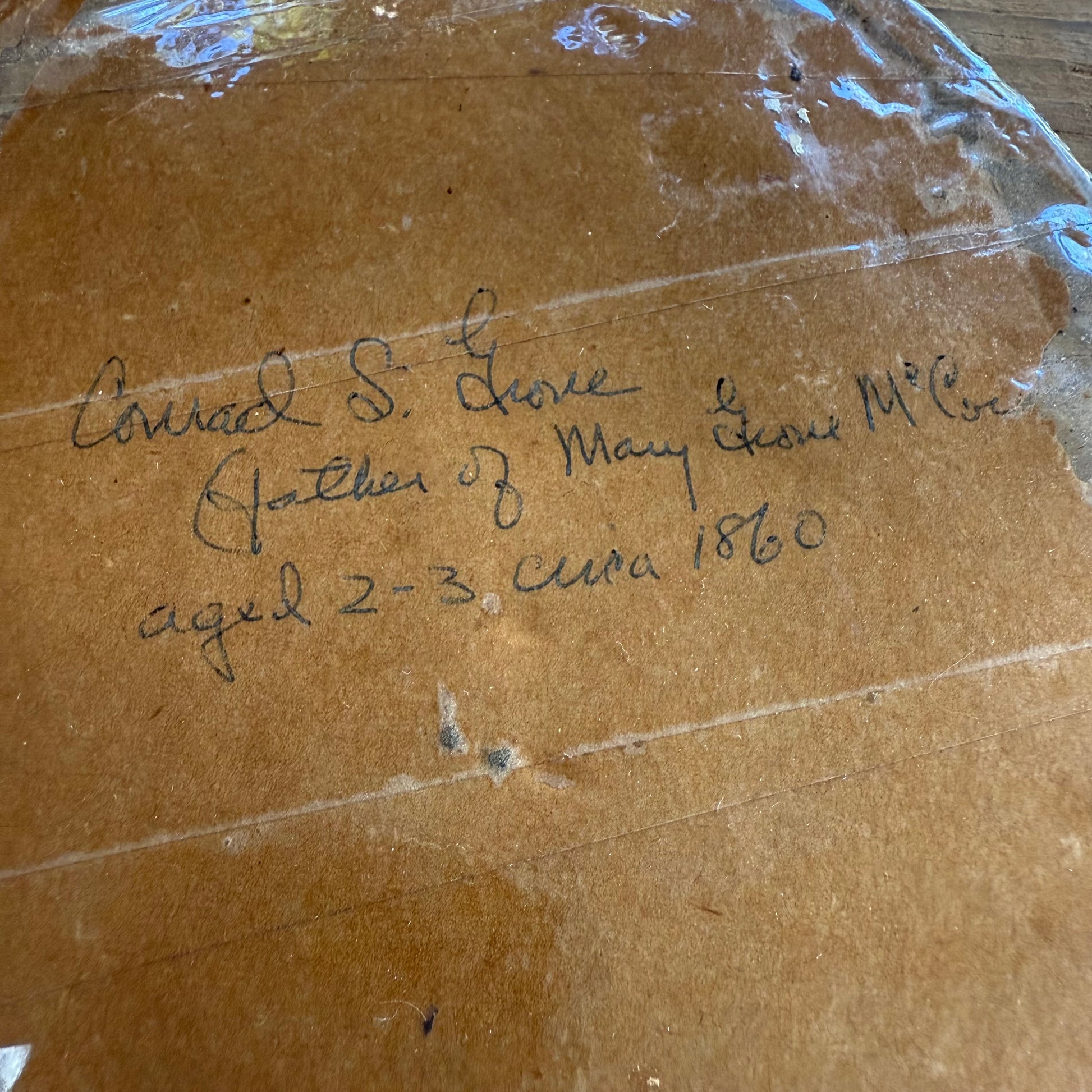 Inscription: Conrad S. Grove father of Mary Grove McCord (?) aged 2-3 circa 1860.