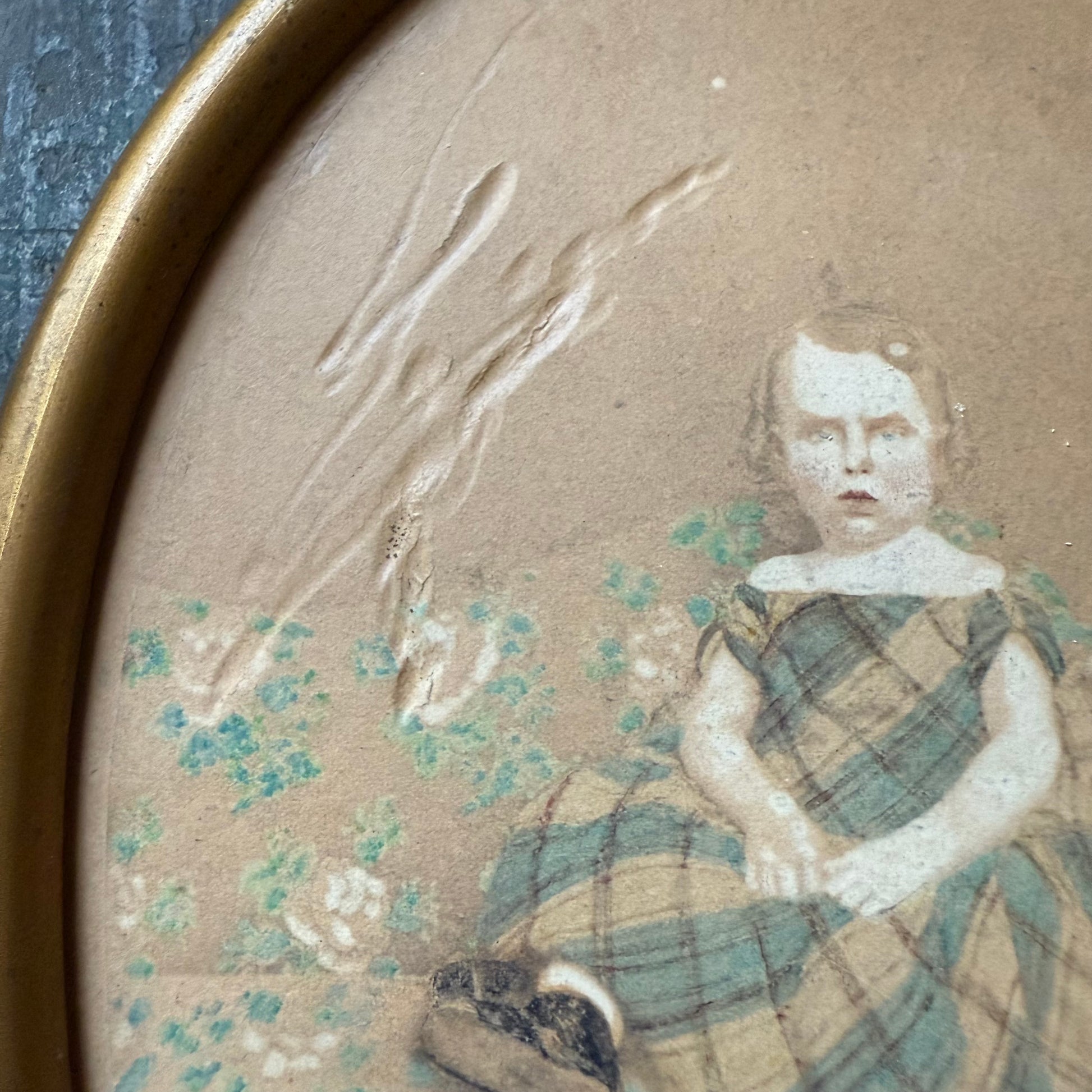 Gold oval framed portrait of a boy, 1860 with provenance.